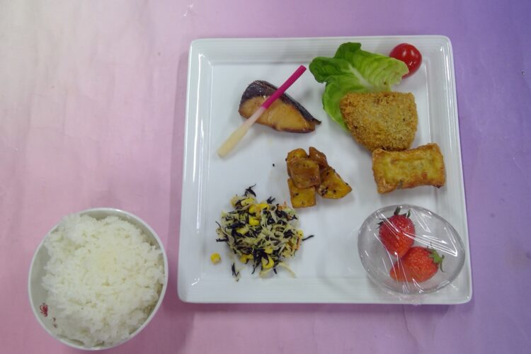 皆さまこんばんは。 2月のお食事のご紹介です。 2月10日(火)朝食です。 ご飯・厚焼きたまご・サバのみそ粕漬け・アスパラマヨ和え・カリフラワー泡雪あん・味噌汁・果物(バナナ)・ 牛乳でした。 続いて昼食です。 ご飯・ ...