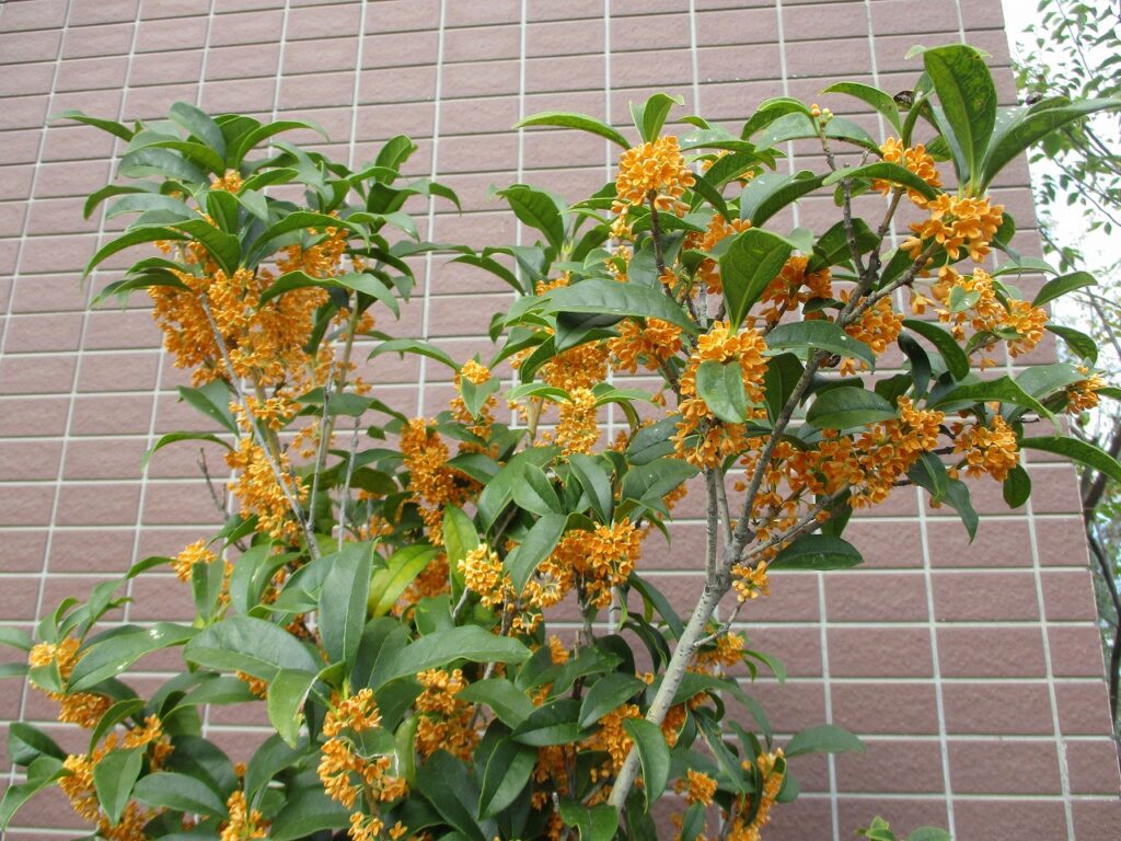 雲も多いですが青空が眩しく、金木犀の黄色が映えておりました。