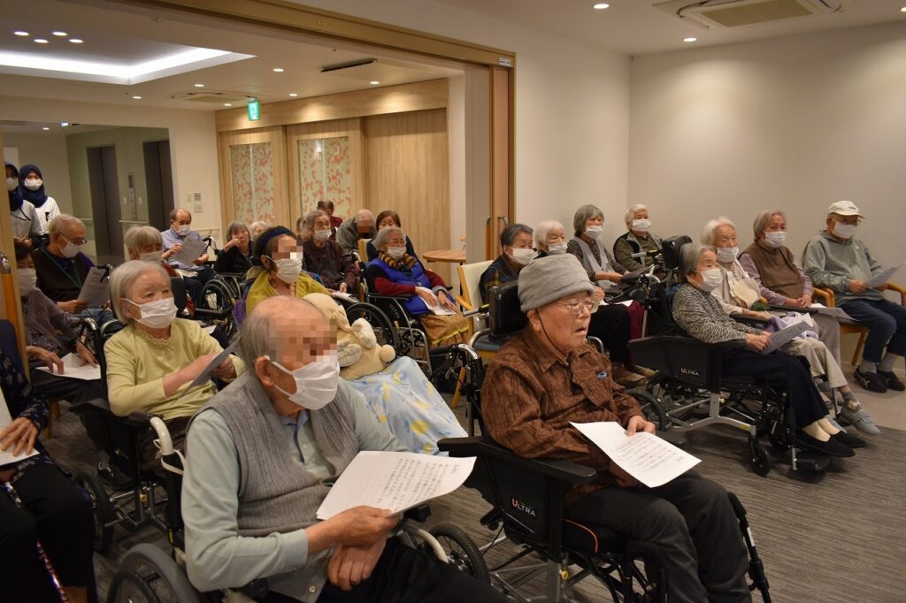 1階・3階のご入居者様をお誘いして「声楽」を楽しみました。