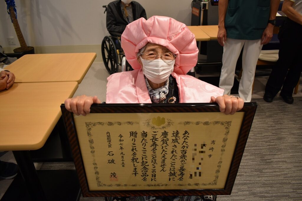百寿のお祝いに総理大臣より表彰状と、カーサから100年前の生まれた日の新聞が送られました🎁