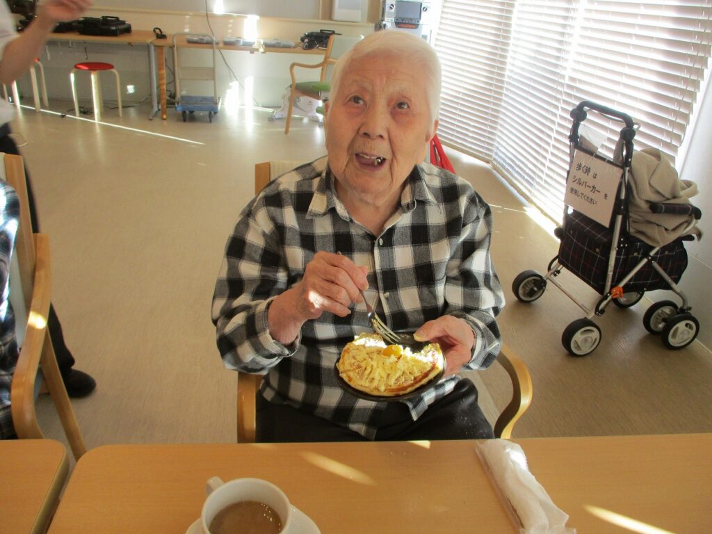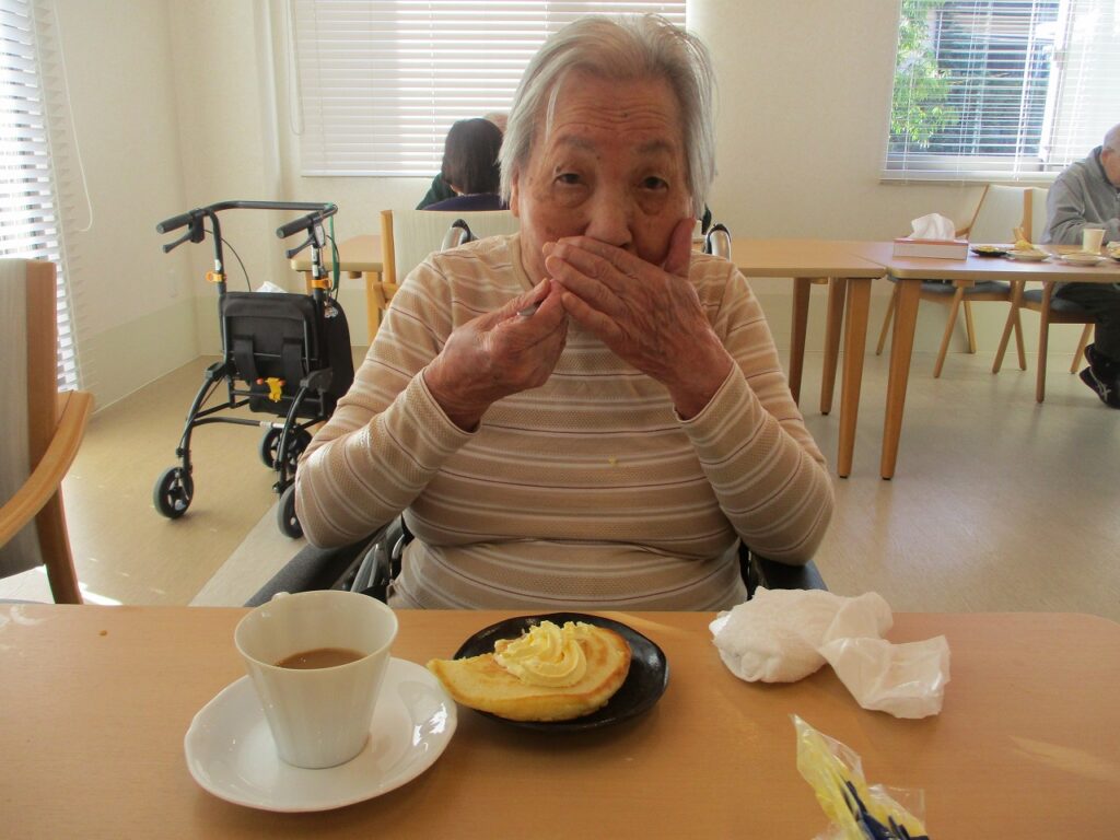 ホットケーキの上に生クリームを乗せた、とってもおいしいおやつでした♪(#^.^#)