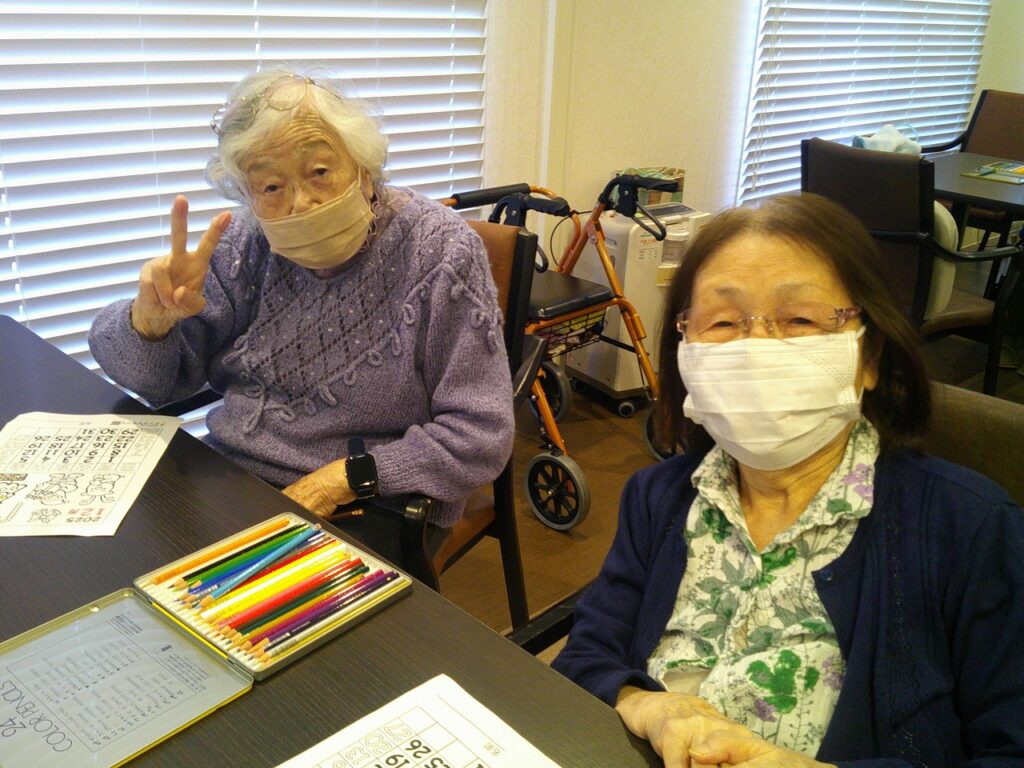 塗る色を迷いながら、皆さまお話ししながら塗り絵を行いました!
