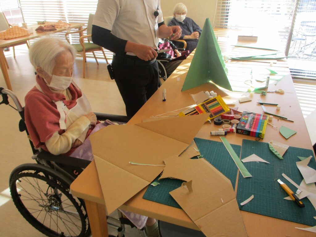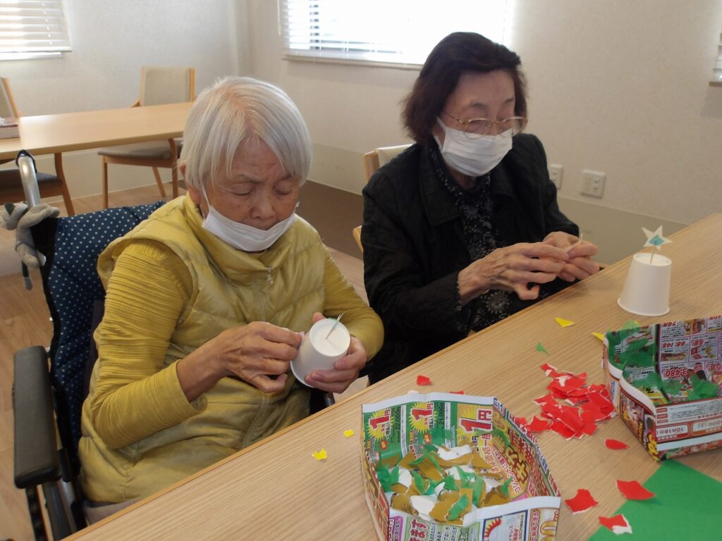 2階EAST棟では紙コップを使ってツリーの創作レクをしました♪(#^.^#)
