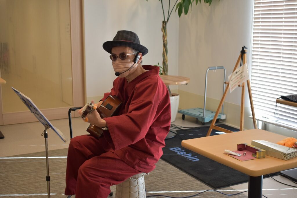 本日1階・2階WEST棟の皆さまをお誘いして「ギター弾き語り」を聞きに行ってきました。