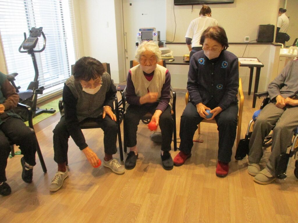 ボッチャはカーサ・デ・ヴェルデ黒沢のレクリエーションでもなかなかない1対1の勝負が楽しめることもありご入居者様の中でも人気のレクリエーションです!
