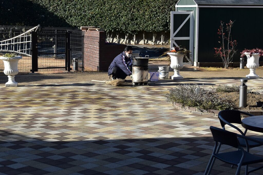 まずは餅つきの準備ですね!外でお湯を沸かし、地域交流スペースに準備をしました!