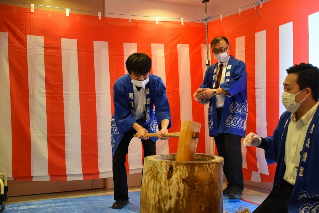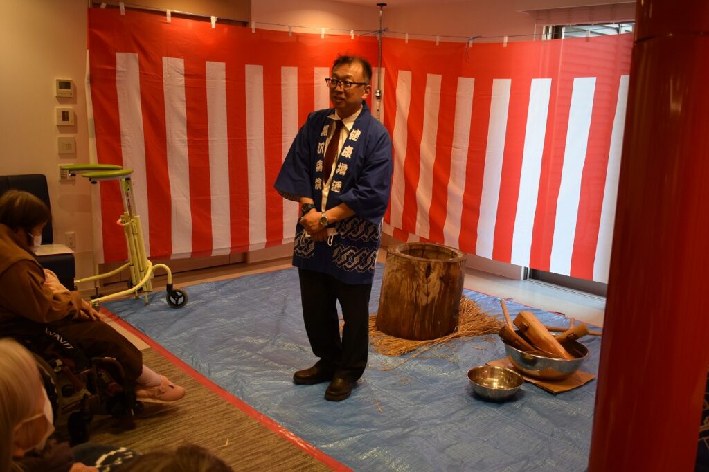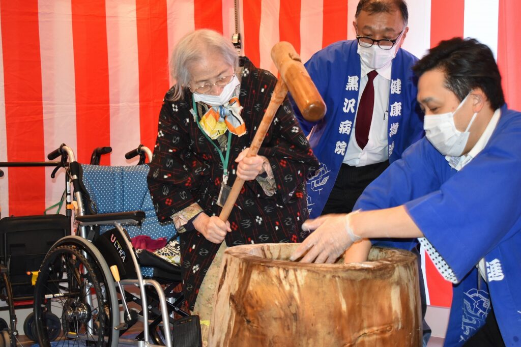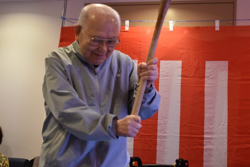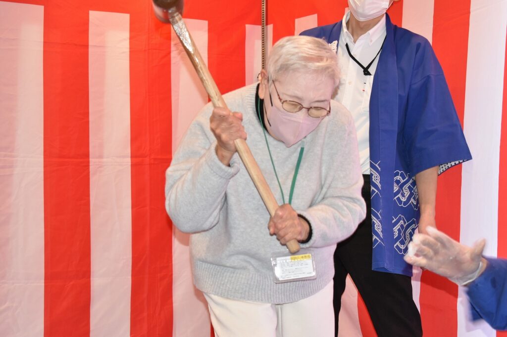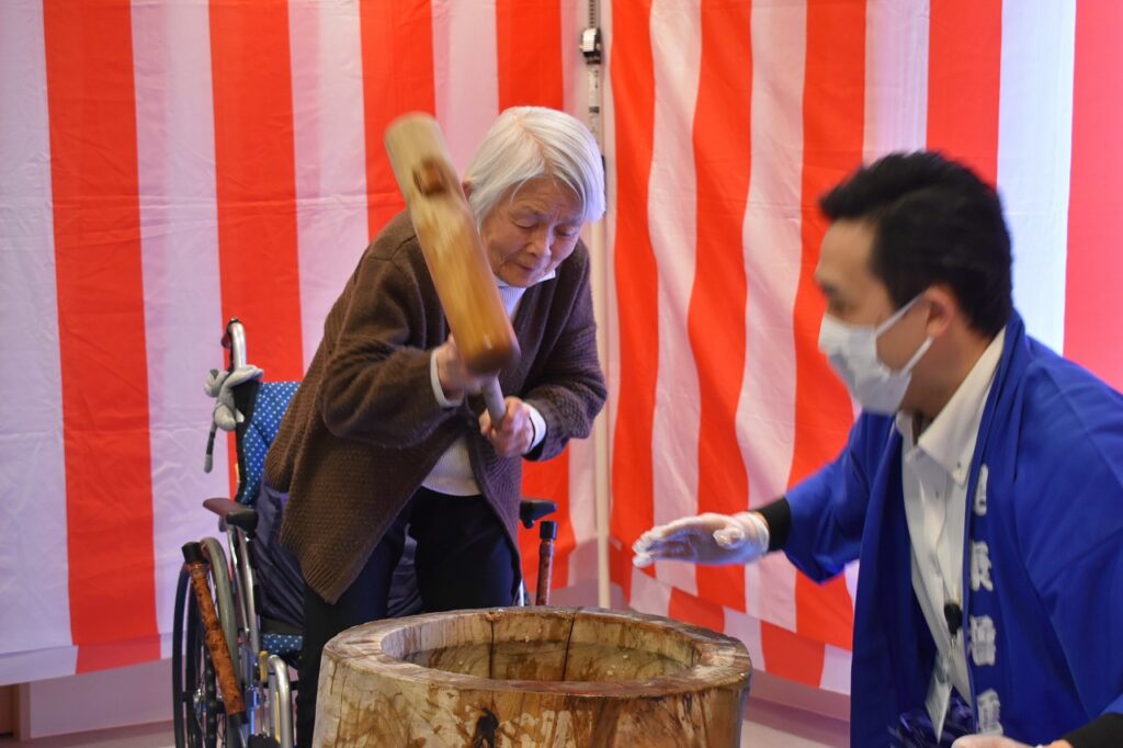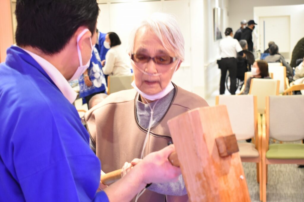 一年ぶりにご入居者様と職員が一緒に参加する餅つきとなり、笑顔あふれる賑やかなひとときを過ごしました。