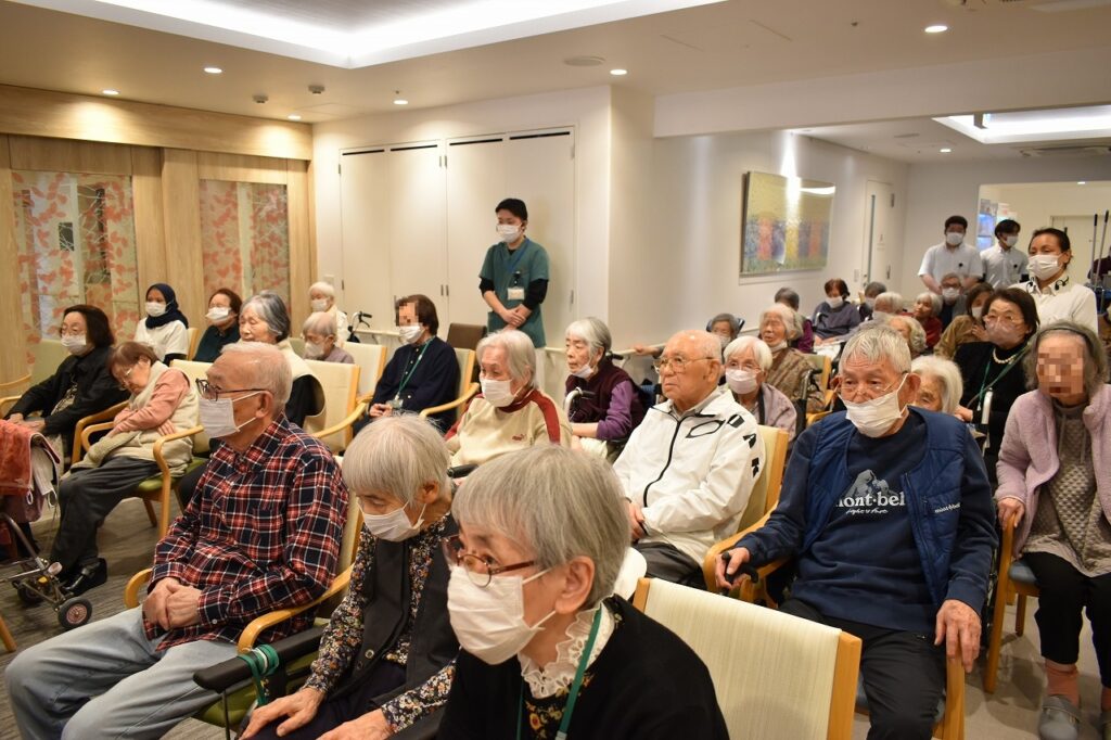 14時から始まるところ開始時間前には席がいっぱいになるほどご入居者様が参加してくださいました。