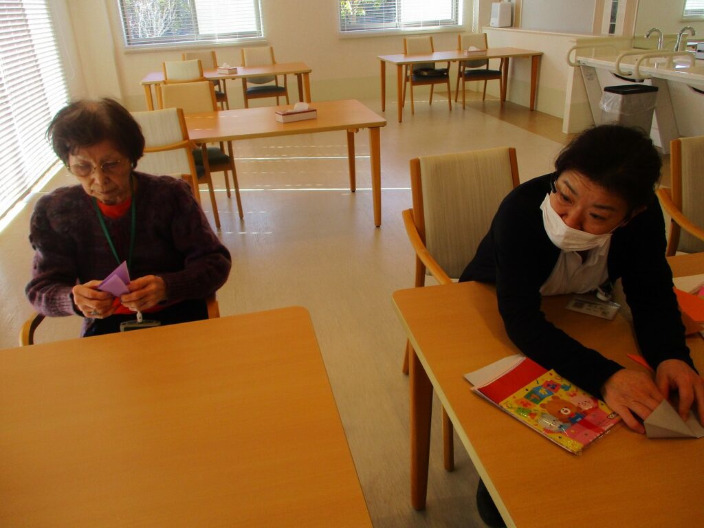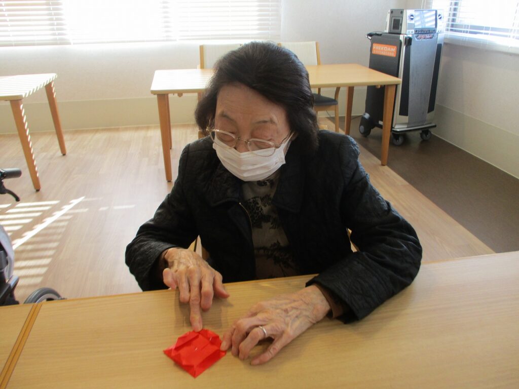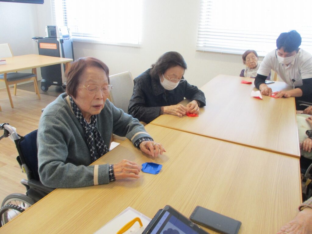 2階EAST棟でも折り紙で節分の桝を作りましたよ♪