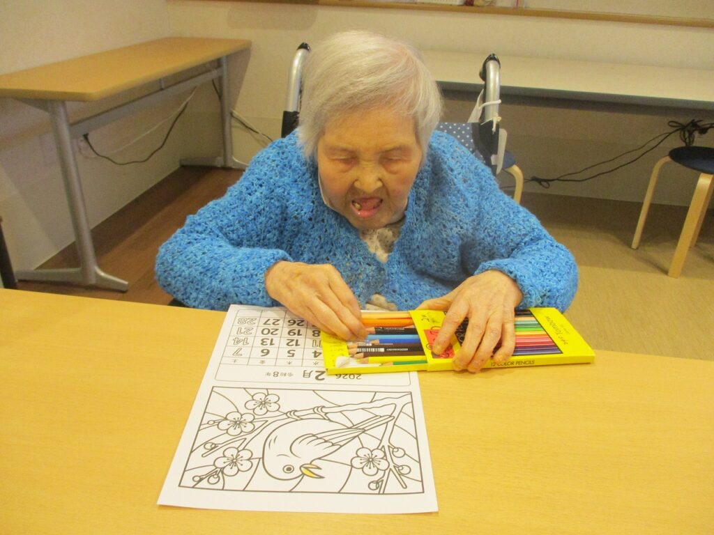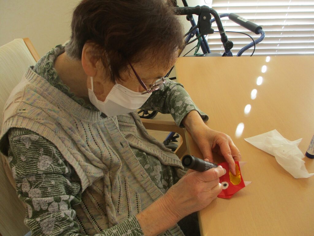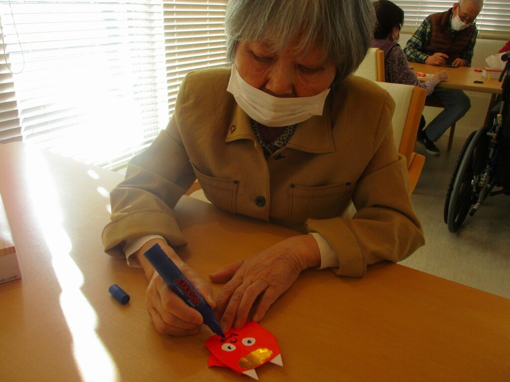 今回は1階!節分に向けてスタッフが一生懸命考えた『鬼の折り紙』を作りましたよ♪