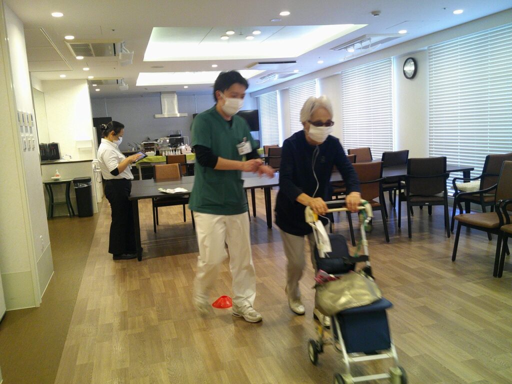 握力・下腿周径・歩行を測定しました。