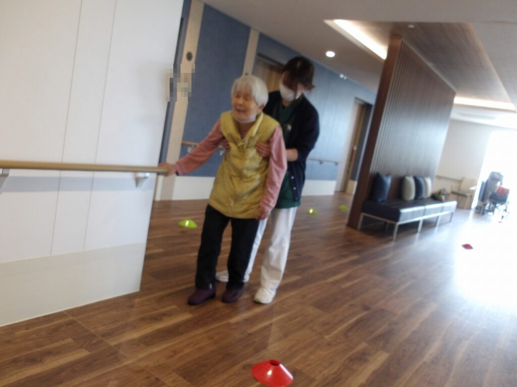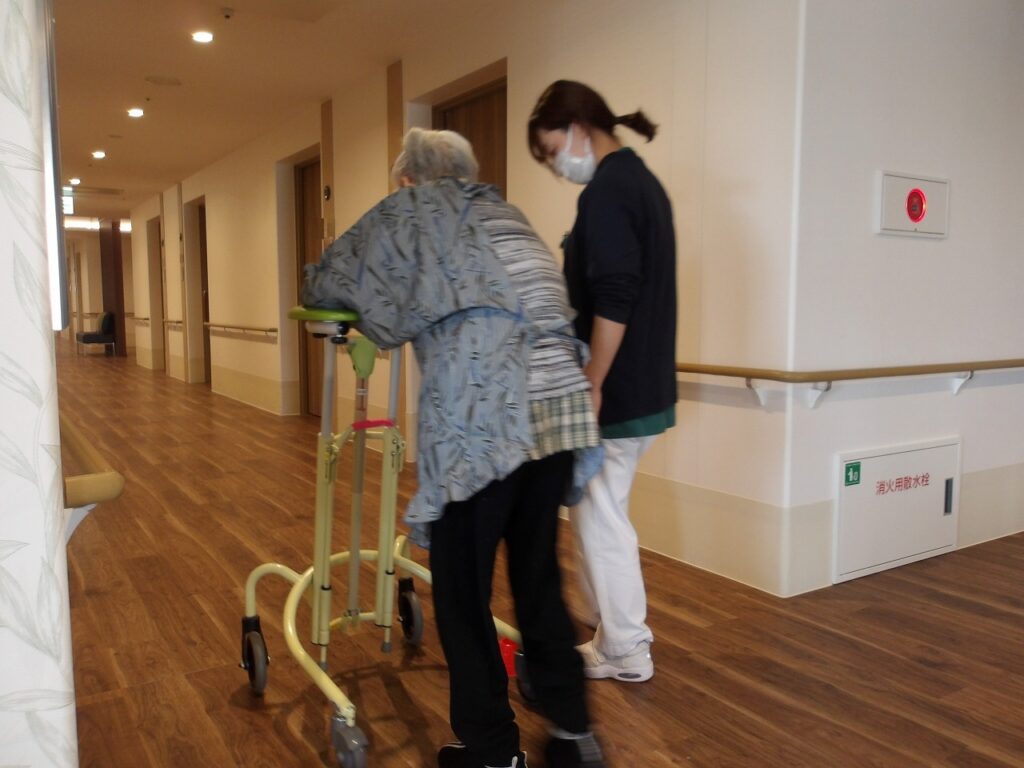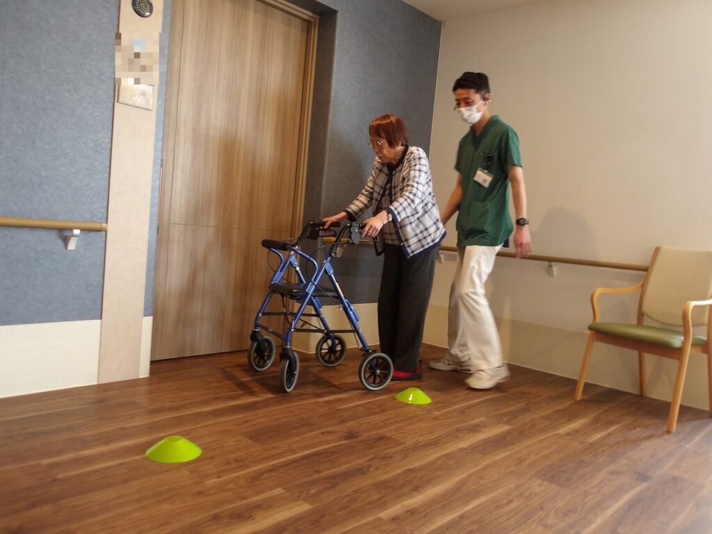 普段は歩かない方に歩行器で歩いていただいたり、起立の練習をしたり…