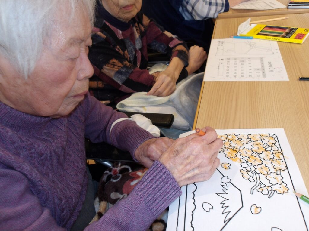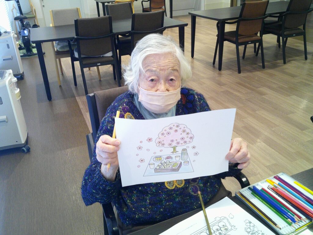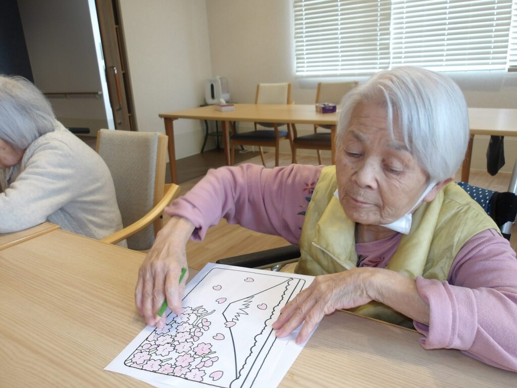 桜や梅の描かれた塗り絵に春を感じました。皆さまお上手ですね✨