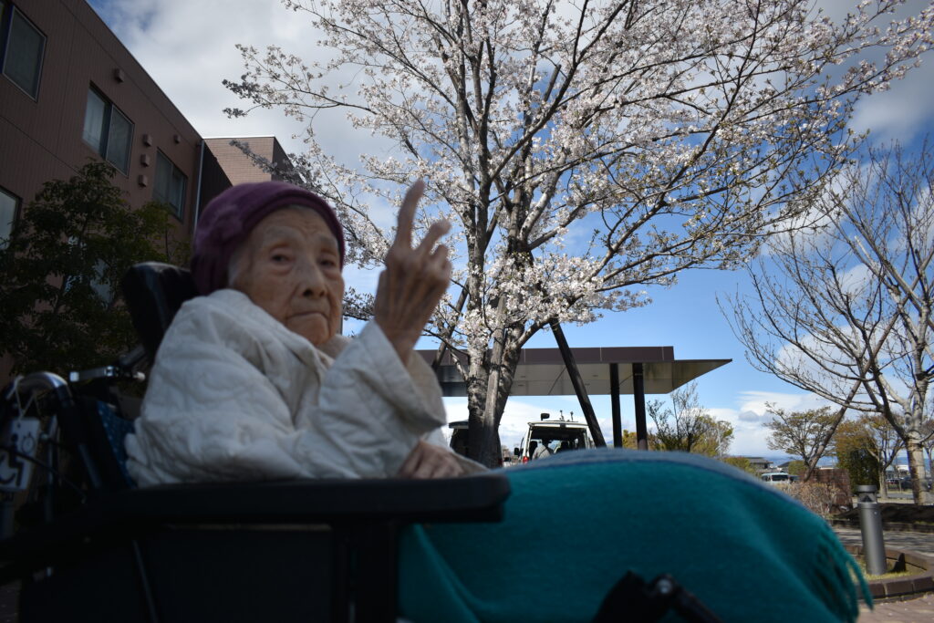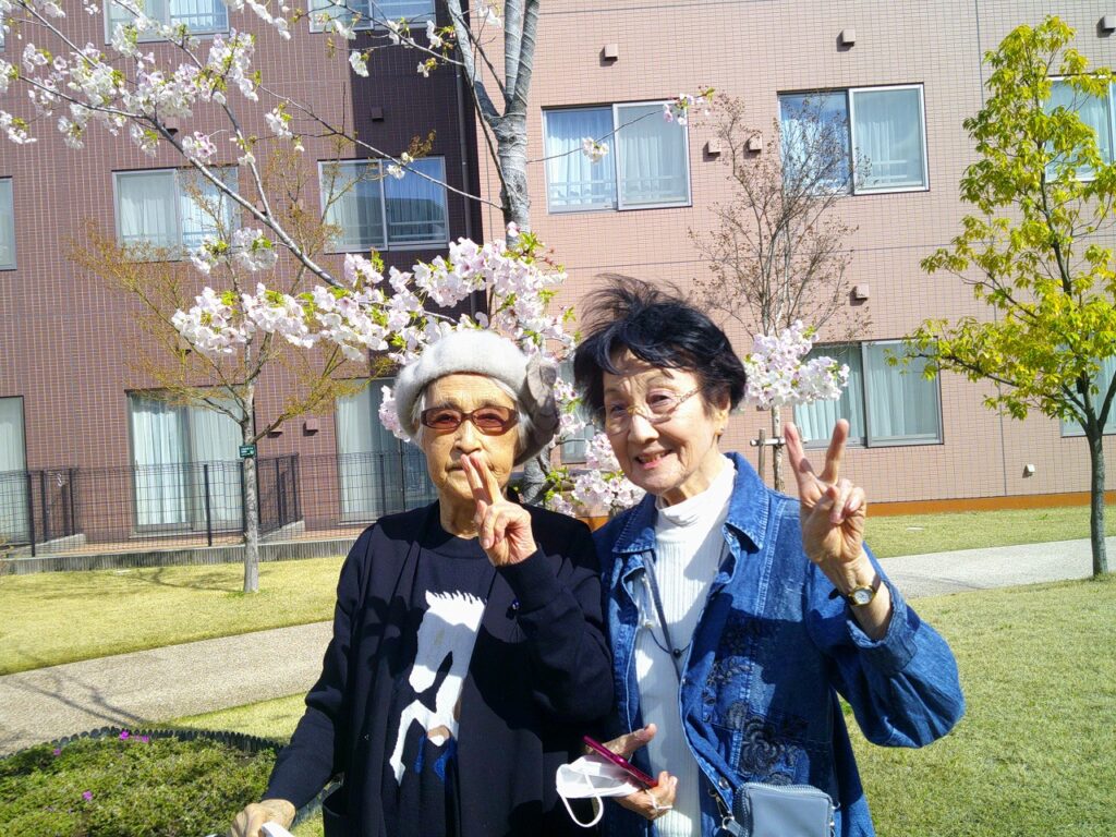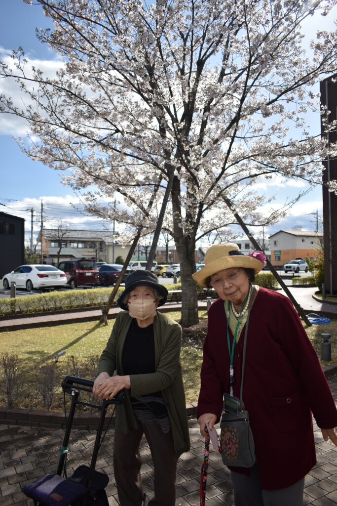 また、3階の方は桜を見る散歩を行いました。雨模様でしたが、散歩の時間には晴れ間となり満開の桜を見ることができました。