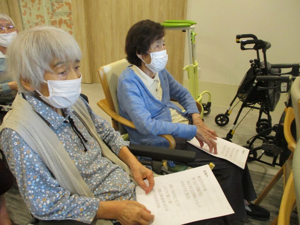 宮先生による発声練習から始まり、懐かしい唱歌や歌謡曲を皆さまで楽しく合唱しました💃